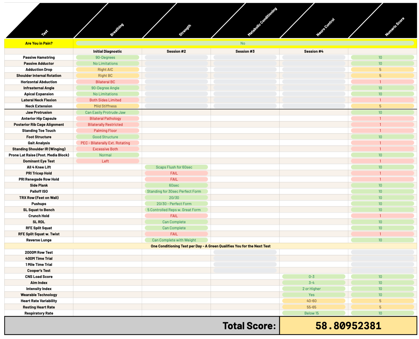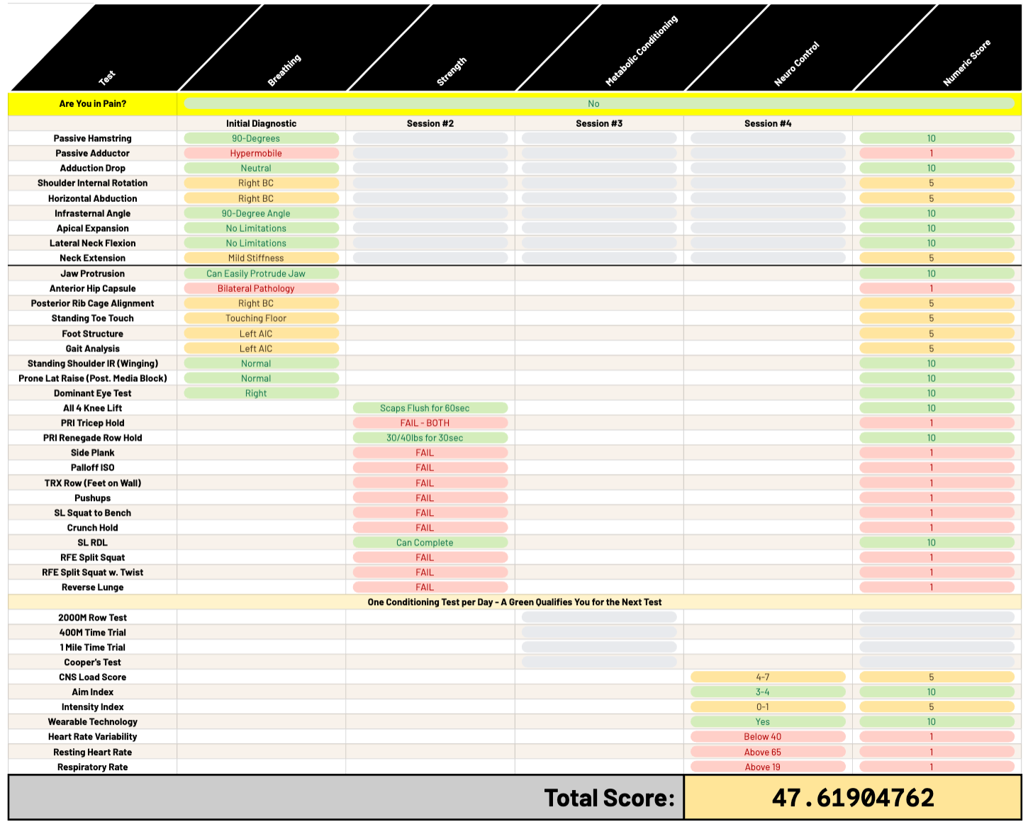 If we take all 42 of these tests and get them flipped to green, the likelihood of him still being in pain is nearly zero because his body is operating at such a high level.