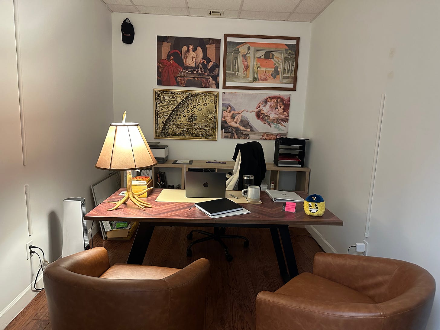 I have this painting hung over my desk because I believe that it is the great secret to chronic pain relief.